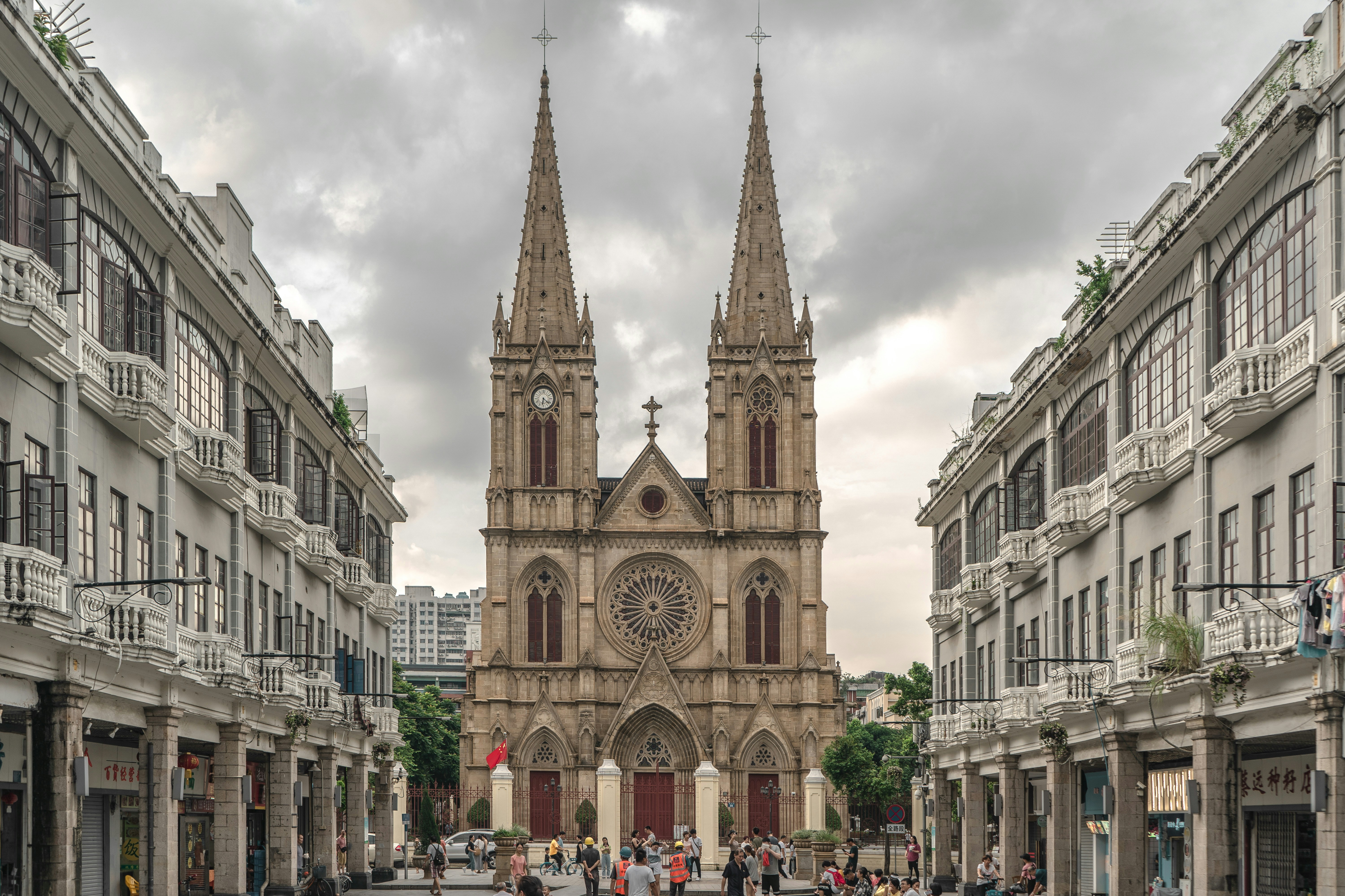 広州中心部にある聖心大聖堂は、1863年から約25年間かけて建設されたカトリック教会。フランス人の建築家がパリの有名な教会をモチーフにデザインしたため、いたるところに西洋のゴシック建築を感じとれます。広州が国際都市ということを実感できるスポットです。